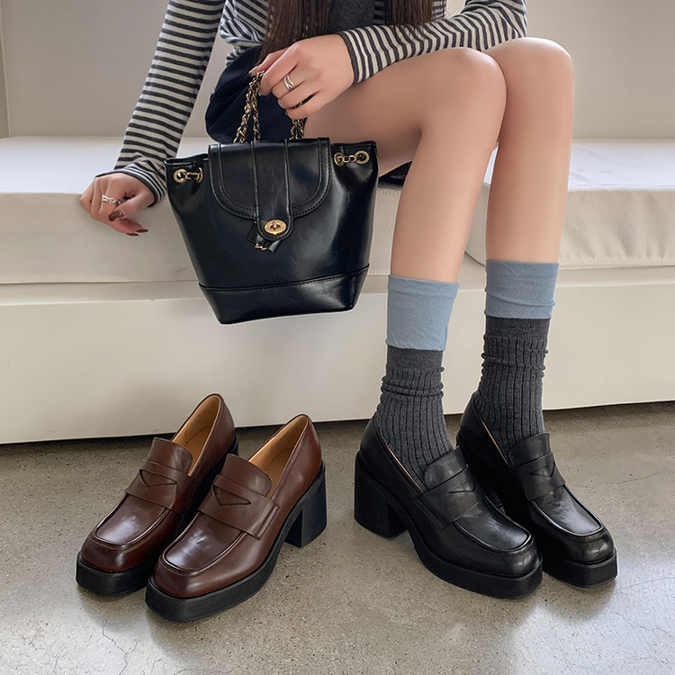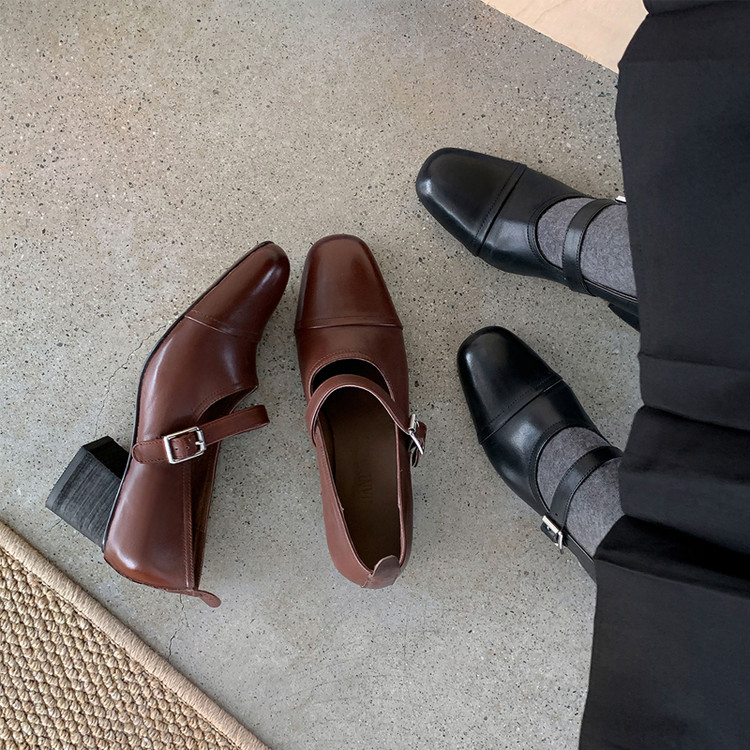 新款深口单鞋 里外全皮 中跟休闲单鞋