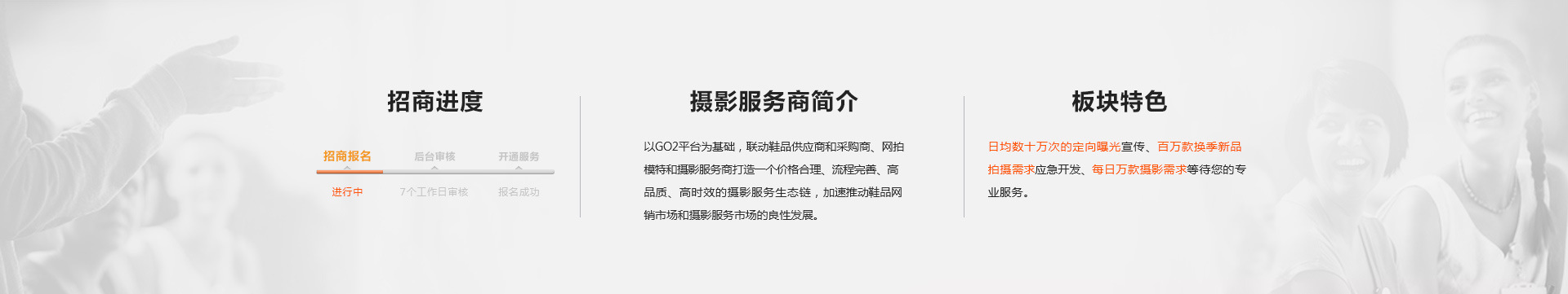 实力摄影商家是GO2推出的全方位体现摄影商家实力的新试点服务模式,其目的是满足生产厂家对产品摄影品质的要求。实力商家需经过严格的资质审核,为厂商提供多样特色的摄影保障服务。